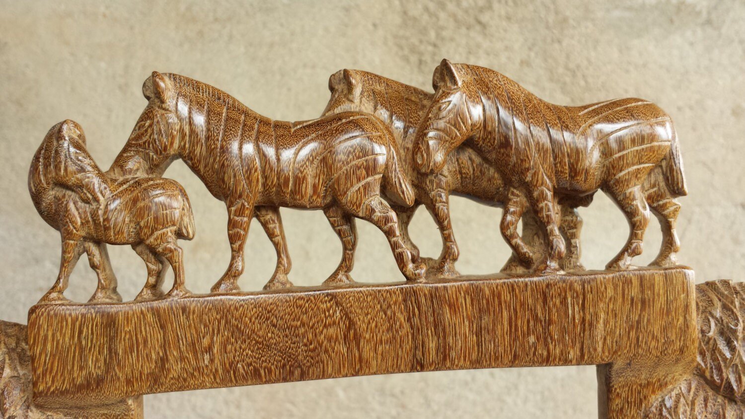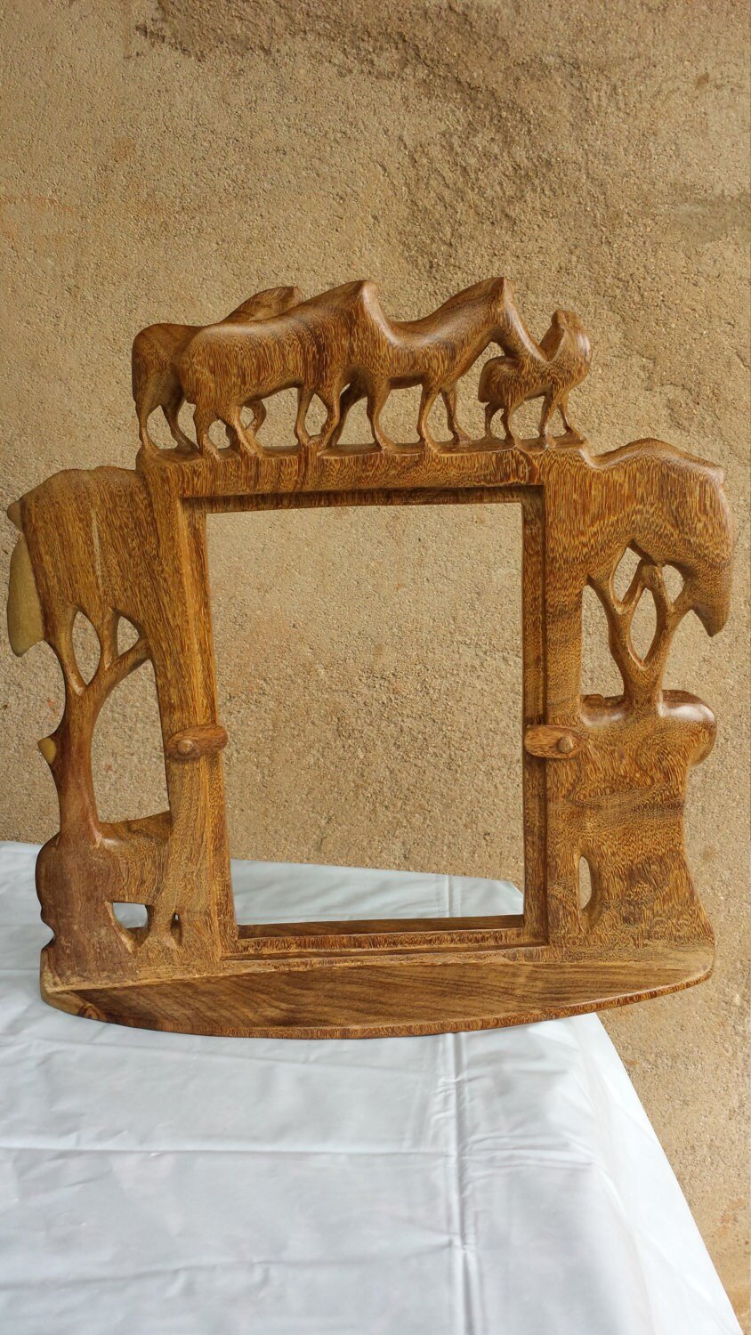A wonderful picture frame with African wild animals all around. The height is 28.7 cm by 29 cm width and it fits a 5x7 photo. It is made out of an African wood called Muwanga and finished with wood wax to bring out its brilliant finish. It stands on its own and its good to put it on a bed side table.