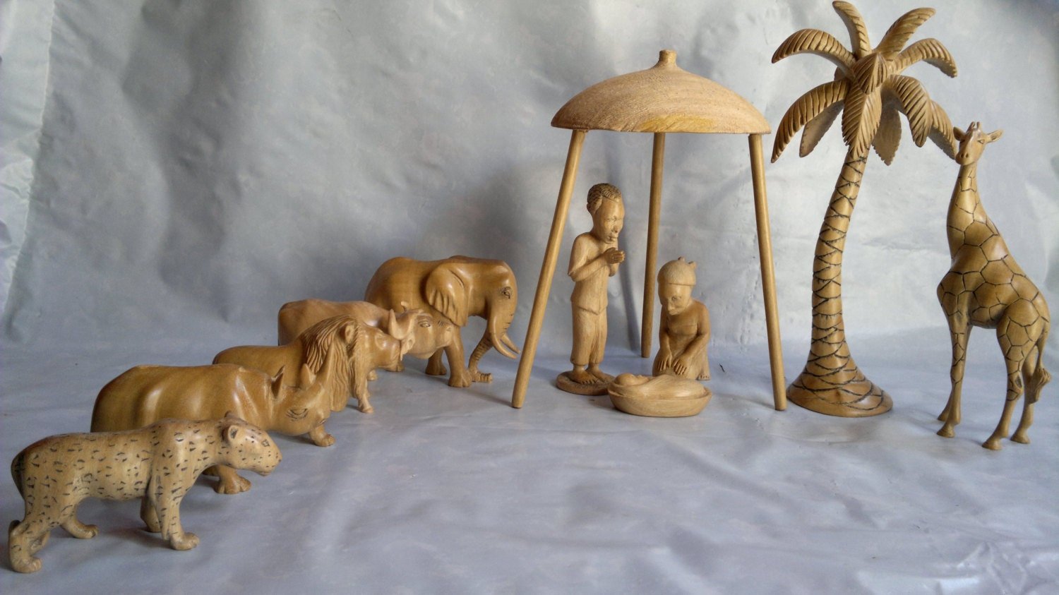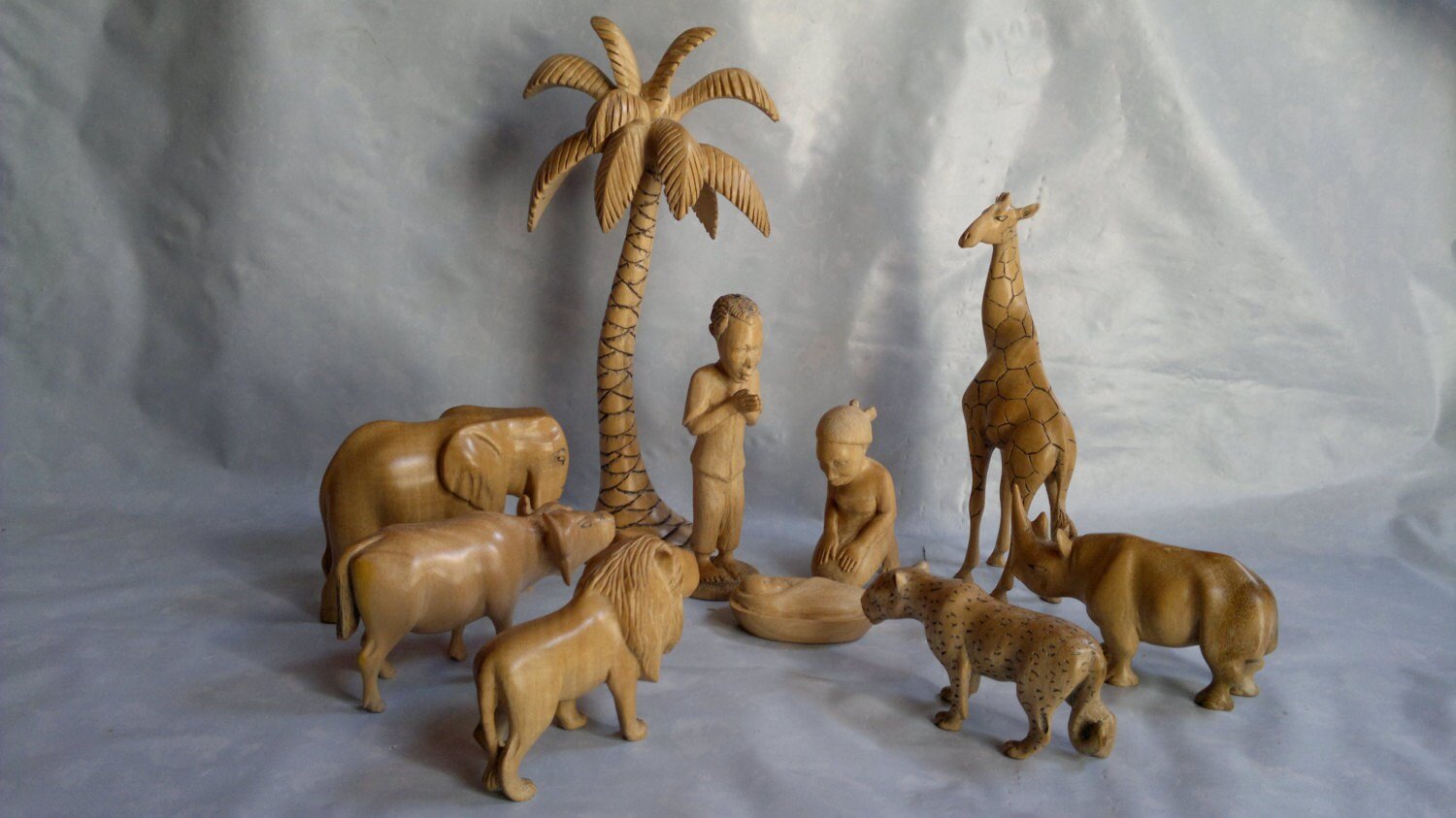 Big five nativity with a Giraffe and a Palm tree