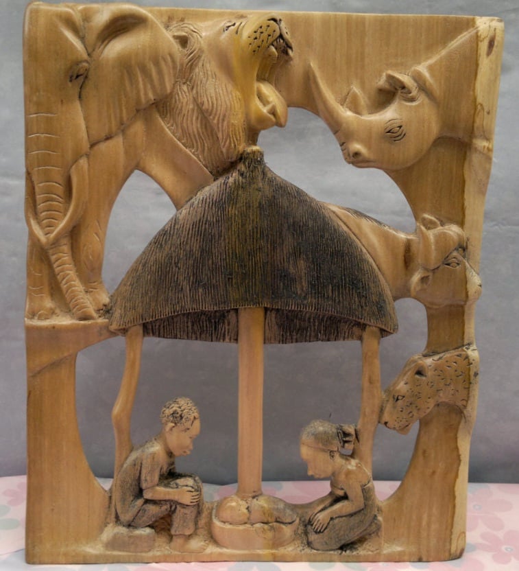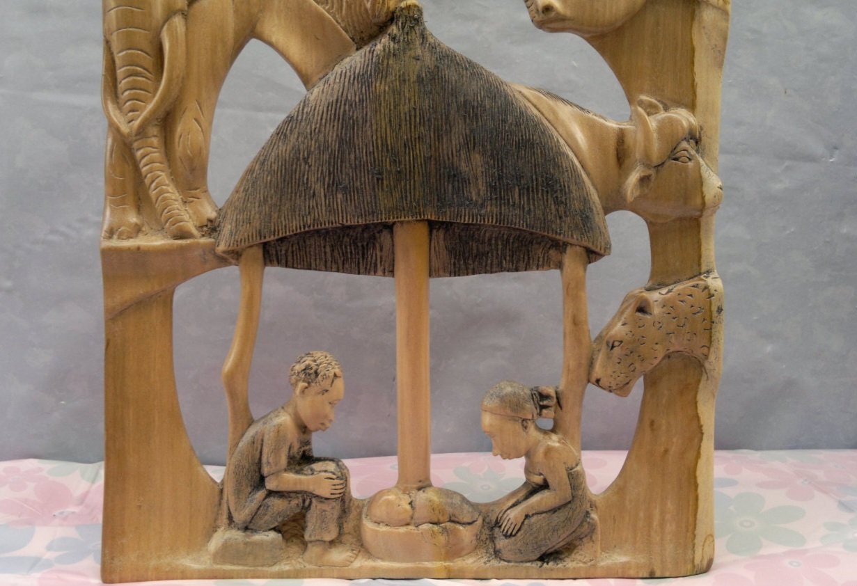 This beautifully crafted one-piece nativity scene stands 29.9 cm tall and 25 cm wide. Inside the charming hut, you'll find intricately designed nativity figures, while the surrounding area features the majestic "Big Five" African animals. This unique piece makes an exceptional Christmas gift and will be shipped via DHL with tracking included.